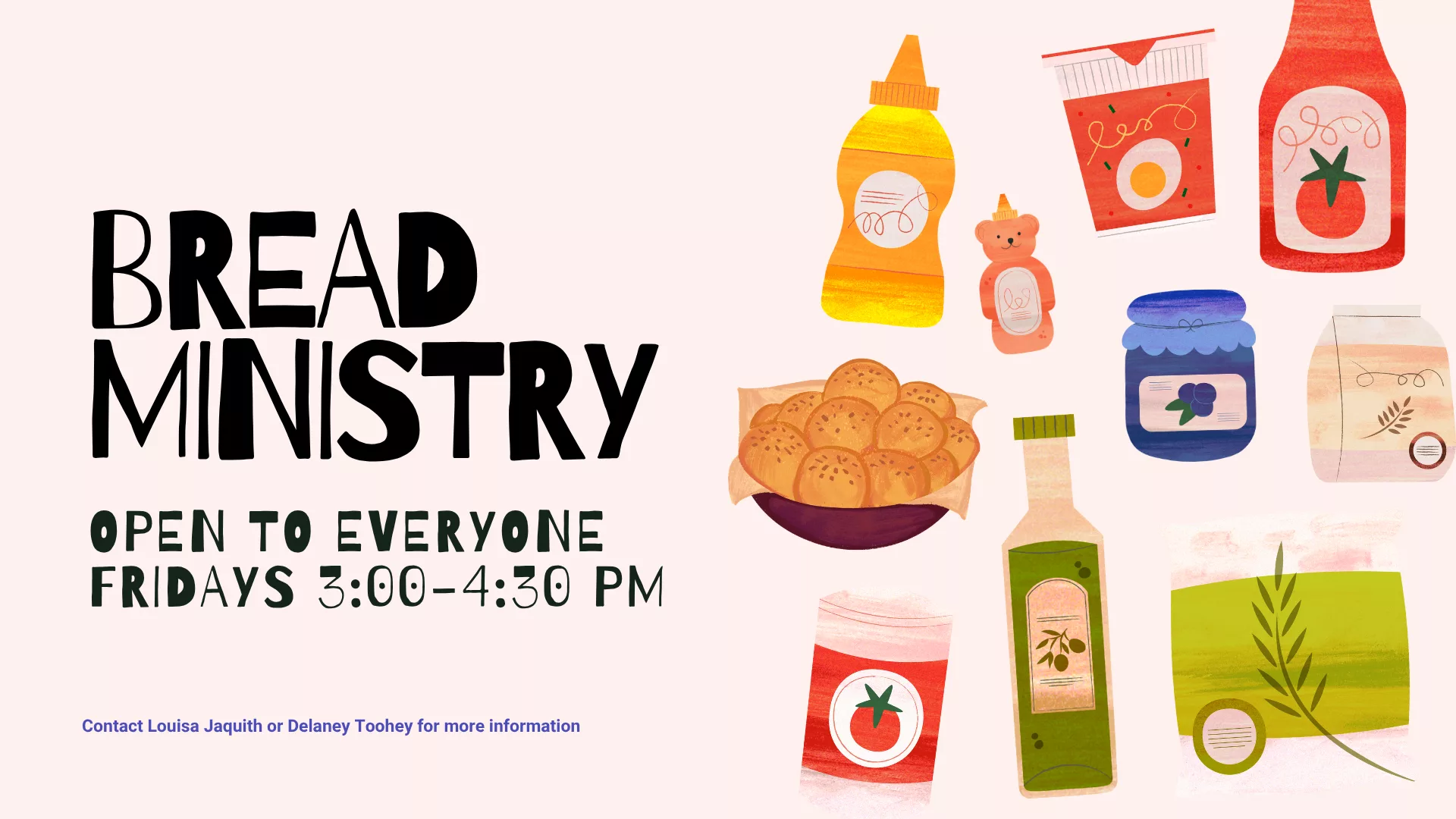 The bread ministry is open to everyone. This ministry provides staples and non-perishables to those in need. Feel free to stop on by.